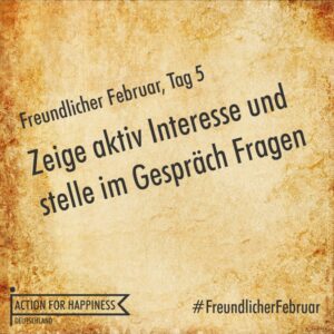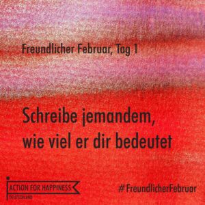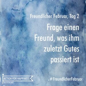 Wer möchte kann mal schauen ;) https://www.actionforhappiness.de/event/category/wochenplan