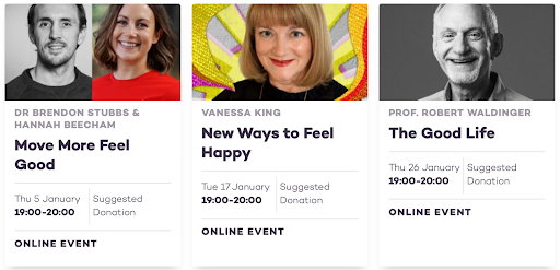 - 17.01., Dienstag, 20:00-21:00 Vanessa King: New Ways to Feel Happy (engl.)