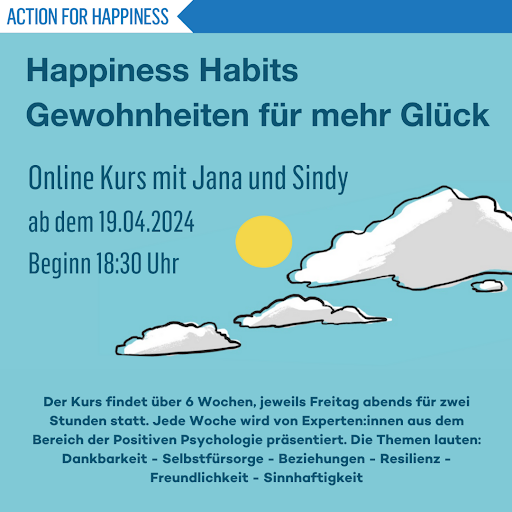 Der nächste Online – “Happiness Habits" -Kurs startet am 19.04. – melde dich jetzt an!