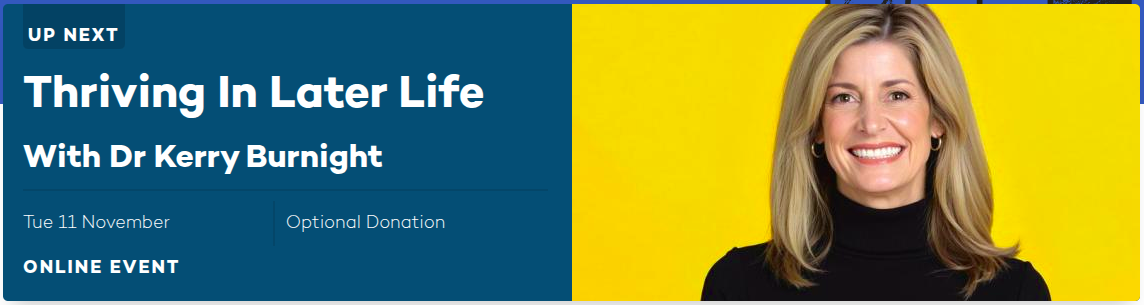 - Dienstag, 11.11., 20:00 Action for Happiness Webinar “Thriving in Later Life” mit Dr. Kerry Burnight