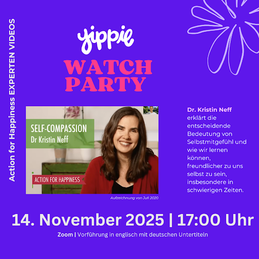 Yippie Watch Party – Action for Happiness Expert:innenvideos gemeinsam ansehen und diskutieren