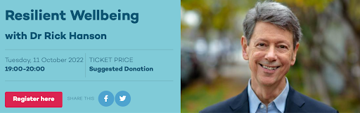 Von 20 – 21 Uhr kannst Du dem Vortrag von Dr. Rick Hanson folgen . Bei dieser besonderen Veranstaltung wird der Psychologe und Bestsellerautor Dr. Rick Hanson eine einzigartige Mischung aus Neurowissenschaften, Achtsamkeit und praktischer Psychologie teilen, um dir zu helfen, besser mit Stress umzugehen und deine Ziele mit einem Gefühl der Fähigkeit und Zufriedenheit zu verfolgen. Rick wird praktische Vorschläge machen, um deine inneren Stärken – wie Mut, Dankbarkeit und Mitgefühl – zu erweitern und dir zu helfen, ein belastbares Wohlbefinden aufzubauen, was auch immer das Leben auf dich wirft. Mehr dazu findest Du hier…