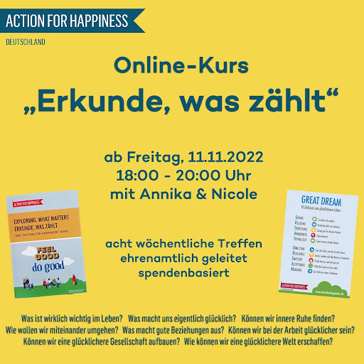 Leiste einen Beitrag und leite den Kurs “Erkunde, was zählt” bei Action for Happiness